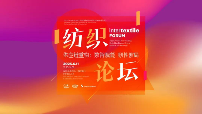 6 月 11 日, “2025 Intertextile FORUM 紡織論壇”在大灣區國際紡織面料及輔料博覽會開展首日圓滿舉辦。本次論壇以“供應鏈重構:數智賦能 韌性破局”為主題,匯聚產業領袖、企業標桿以及品牌先鋒,共同探討數智化浪潮下紡織供應鏈的轉型路徑與未來機遇,為中國紡織產業的高質量發展注入新的活力。
