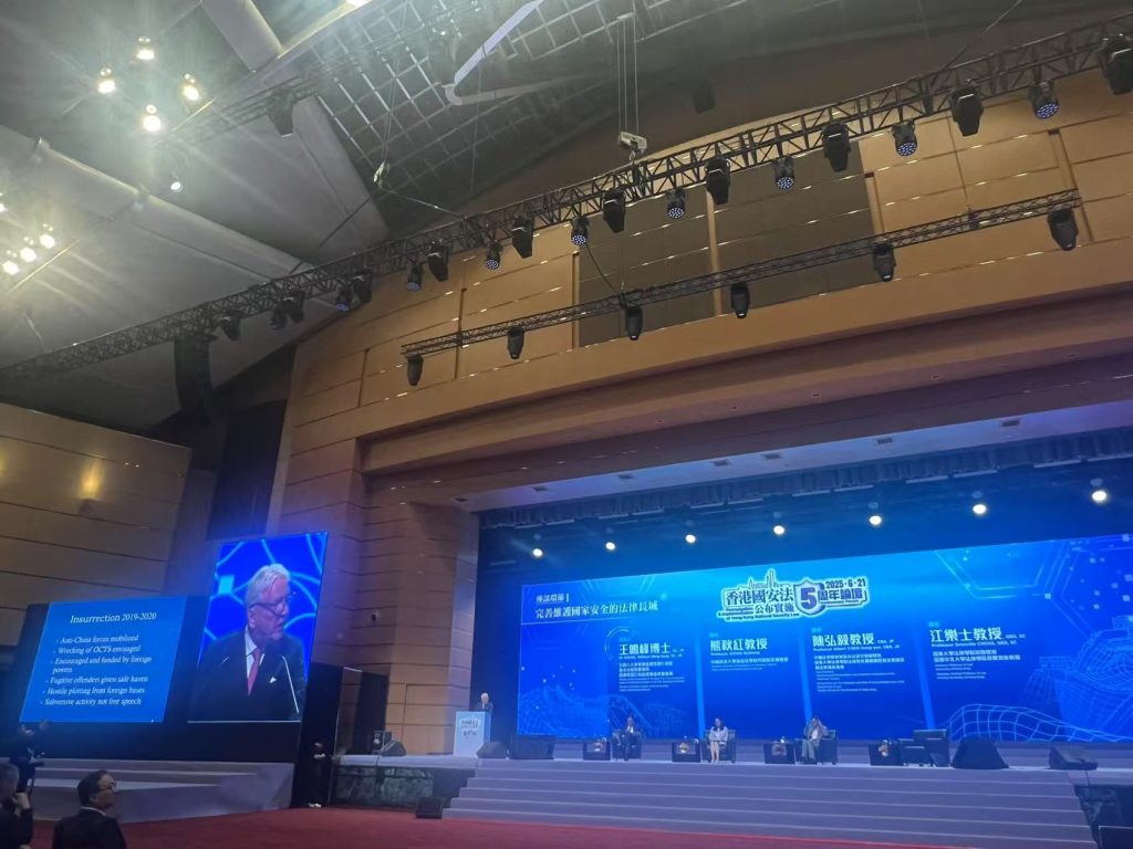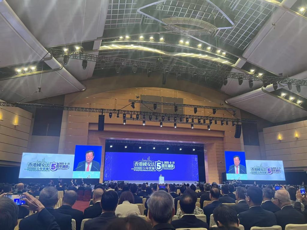 選委代表出席國安法公布實施五周年論壇 / 會員動態, 香港紡織報 / 作者: wong chris 6月21日,選委代表今日獲邀出席於香港會展中心舉行的「香港國安法公布實施五周年論壇」,由港澳辦主任夏寶龍主禮並致辭。 香港紡織商會永遠榮譽會長黃守正、陳亨利、常務副會長楊燕芝出席。 夏寶龍指出,自2020年6月30日國安法實施後,香港進入由亂及治、恢復穩定的新時期,法治體系日趨完整,社會安寧有目共睹。 論壇上夏寶龍主任強調要警惕外部敵對勢力干預、確保愛國者治港,並以高水平安全保障高質量發展。香港未來仍需強化安全與發展並重,走穩「一國兩制」高質量之路。
