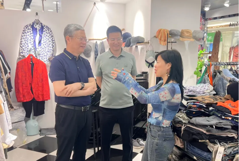 調研組一行實地走訪了白馬服裝市場的核心創新區,重點考察了市場商戶經營狀況、品牌孵化成果及新商業模式打造等。廣州白馬服裝市場作為紡織服裝產業流通領域的創新引領者,近年來積極推動原創設計、品牌升級和數字化轉型,培育了一批具有市場競爭力的本土服裝品牌。夏令敏對廣州白馬市場在促進產業升級、服務中小品牌商戶等方面取得的成效表示充分肯定,並指出:“專業市場是紡織服裝產業鏈的重要樞紐,廣州白馬的創新實踐為行業提供了寶貴經驗。”