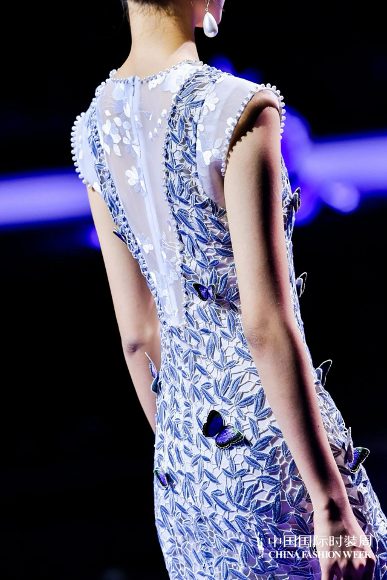 將面料升華為藝術的,則是那些瀕臨失傳的非遺技藝。關淑敏多次深入貴州苗寨、潮州繡坊,坐在繡娘身旁,一看就是幾個小時,研究潮繡如何能產生浮雕般的立體效果,探討苗繡的圖騰紋樣如何抽象化為現代圖案。“這些手藝背後,是千百年來女性的智慧與情感。我要做的,不是讓它們成為衣服上一個‘有故事’的標簽,而是讓這種技藝的生命力,通過我的設計,在當代女性的身上延續下去。”