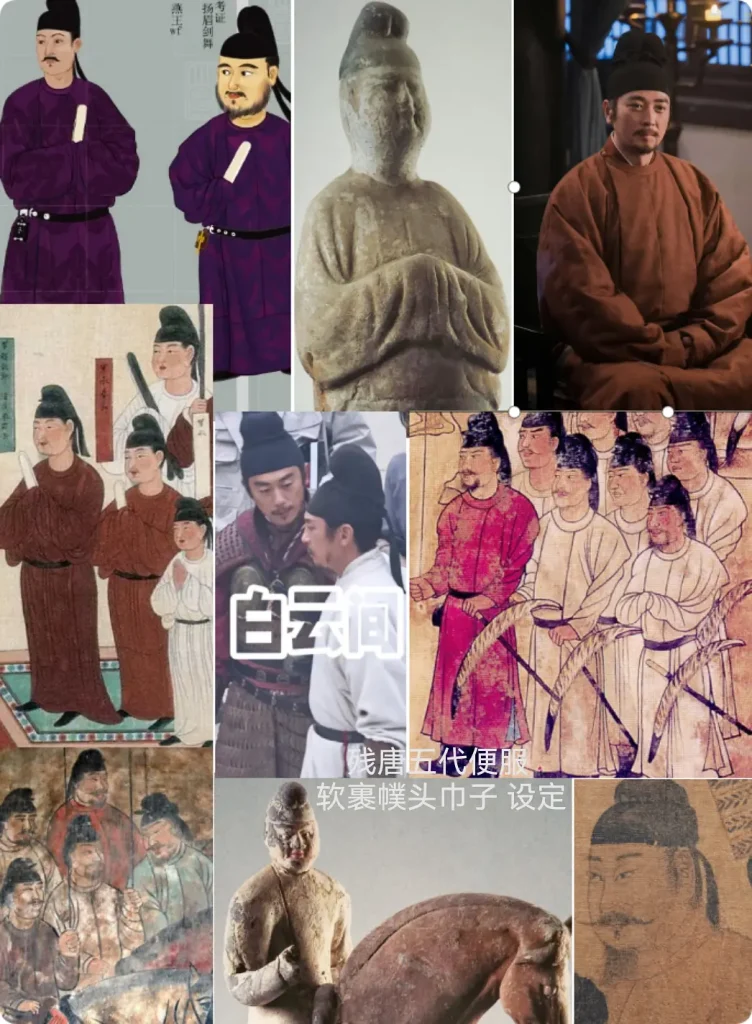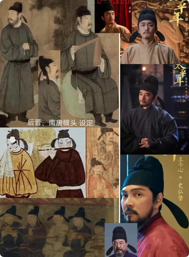 文章尤其聚焦衣冠服飾與禮儀制度:作者認為劇中禮服(公服、嘉禮朝服、吉禮祭服等)在輪廓與形制上,能與傳世壁畫、陶俑、石刻、敦煌繪畫等資料互相對照,顯示製作方參考了大量歷史形象素材,嘗試呈現唐宋之際「由唐入宋」的服飾過渡特徵。文中亦引用《雲麓漫鈔》《舊唐書·輿服志》《宋史》等典籍條文,討論幞頭、冠服、章紋制度等名物演變,並以「圖像資料+文字史料」方式展開比對與解讀。